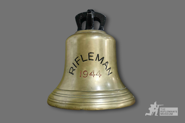 As recorded in the Royal Green Jackets Chronicle (1969), Major A.E.K. Karslake wrote that “the affiliation between the Green Jackets and HMS Rifleman was brought to a final conclusion in October when the Ship’s bell came to rest at Winchester.” Its arrival was due largely to the efforts of Captain Michael Beeching, Royal Navy, the ship’s final commanding officer. On learning that the bell was to be sold by the Navy, Captain Beeching ensured that the Regiment’s bid for it was successful, and arranged for it to be brought south from Rosyth in naval transport.