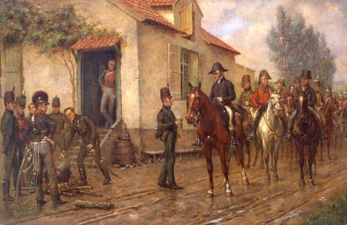 “The retreat continued through incessant torrents of rain… The Riflemen did not reach the position of Waterloo till a couple of hours before dark. There they bivouacked… near a small cottage where Sir Andrew Barnard had established his quarters.”